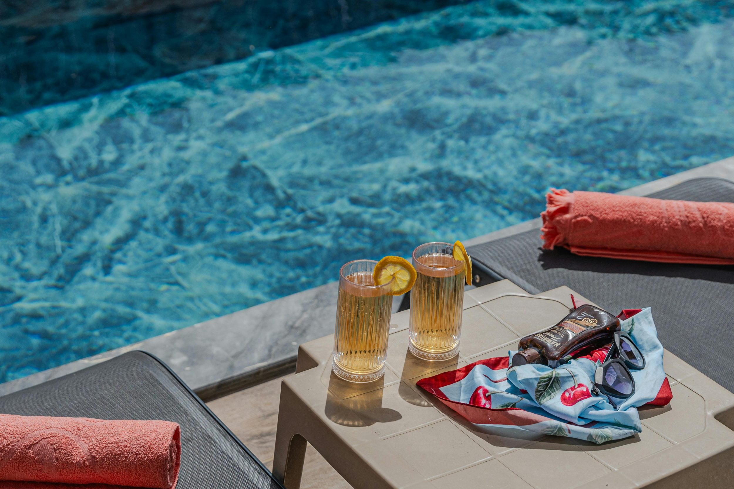 The pool sits above the Cotswold landscape with stunning countryside views. When the sun is shining it’s easy to mistake your setting for Italy of the South of France. Dip your toes letting time pass you by with the gentle back and forth of your guests playing tennis alongside. All that’s missing is the waiter to bring your champagne, strawberries and cream!